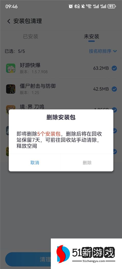 2、接下来,我们将看到设备中未安装的安装包,这会消耗大量内存。