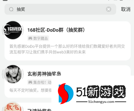 2、在主页搜索栏目上方有个搜索区域,这里我们输入“抽奖”关键词。
