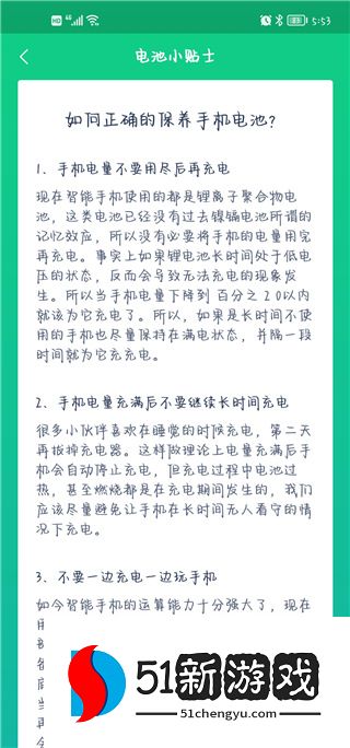 4、该软件还为用户提供电池提示,让他们学习如何正确维护手机。