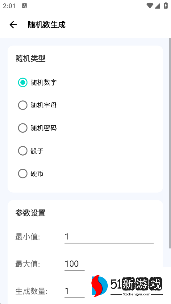 支持随机数字、字母、密码生成,模拟骰子/硬币投掷,可自定义参数。