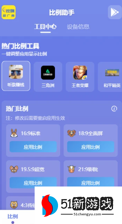 比例助手(手机变平板)app是一款专门为《和平精英》等游戏打造的图像质量优化工具。它可以将游戏画面比修改为16比9,同时还支持多种尺度修改,如8P模型比、平板电脑比、黑边广角比1。这款软件功能强大。用户可以自由修改各种数据的参数,系统自身的一些数据也可以进行修改,使其操作非常方便。它不仅可以提高游戏质量,快速发现敌人的踪迹,掌握游戏情况,更好地体验游戏过程,甚至可以提高射击准确度,帮助你顺利吃鸡。