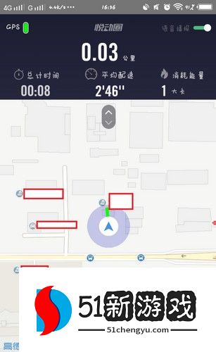 4、跑步后,会有路线记录、时间、速度和消耗了多少卡路里。