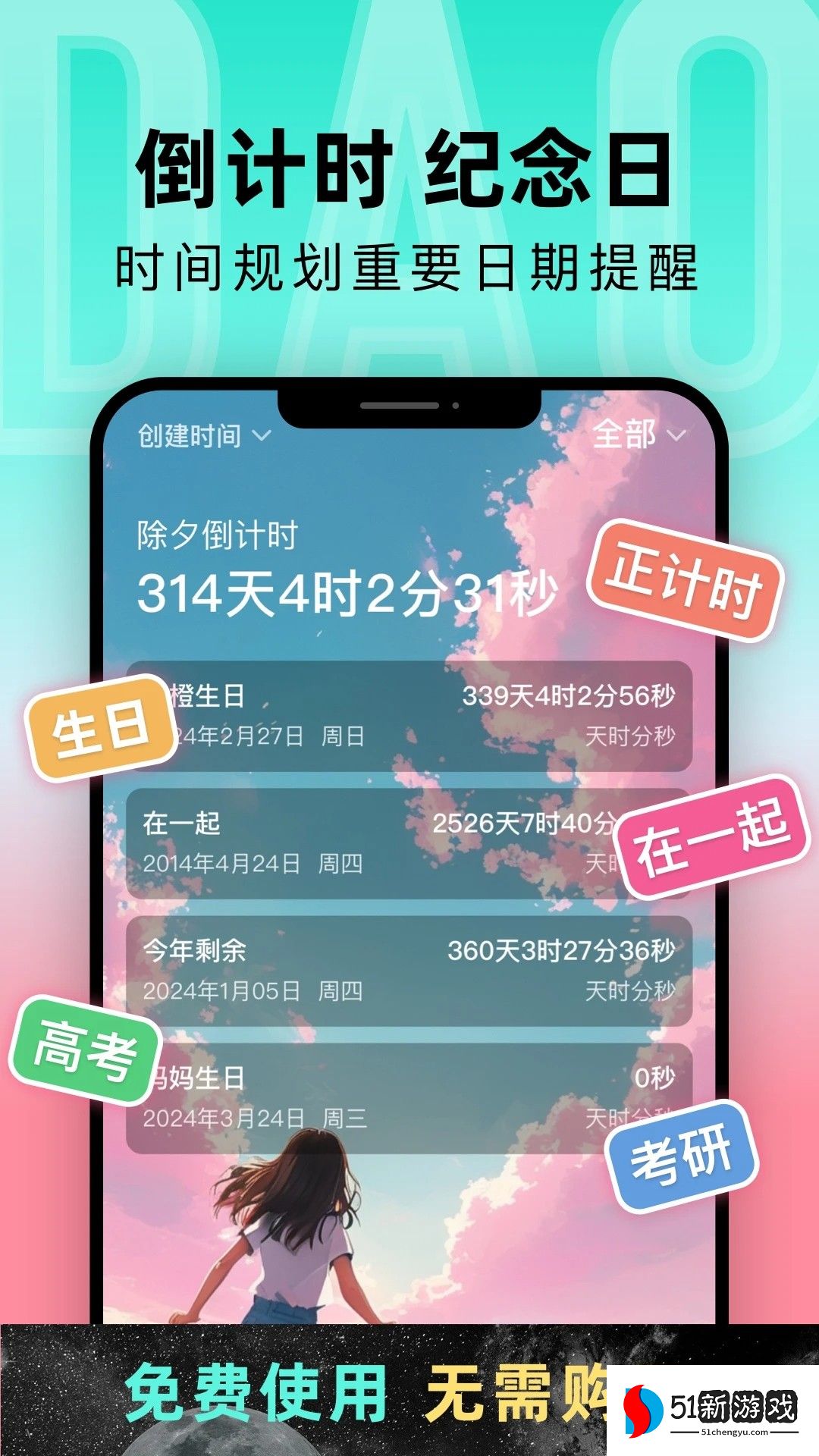 4、多设备同步:支持在手机和平板电脑等多个设备上同步使用,允许用户随时随地查看和管理倒计时事件。