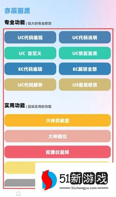 8、前往【更多页面】,还可使用【UC代码编辑】、【大神灵敏度配置】、【陀螺仪超频】等功能,深度定制你的游戏操作体验。