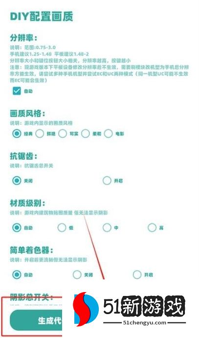 7、点击【DIY画质】,可根据个人设备性能和偏好自定义配置,如分辨率、抗锯齿、反光强度等,打造最适合自己的画质体验。