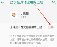 1、开启手机里的小熊猫辅助器程序,点击允许显示在其他应用上层的按钮。