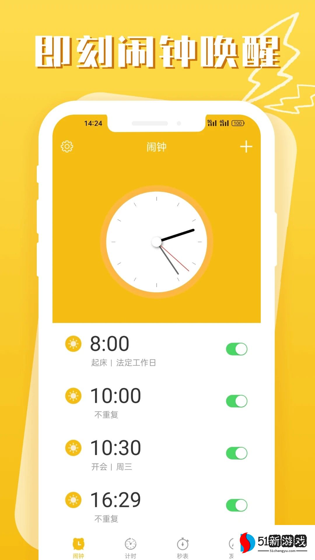 即刻闹钟是一款非常简单的免费闹钟软件,拥有丰富多样的时钟样式,轻松为用户显示各种时钟信息,还提供准确的时间提醒和解决方案,及时设定闹钟,能完全满足所有使用需求,还集成计时器、秒表等各种实用功能,可以满足用户在不同生活场景中的需求,无论是早上起床、日常烹饪、工作会议还是日常提醒,随时为用户提供准确的时间提醒,帮助他们更有效地管理时间,提高生活效率,有兴趣的用户欢迎来本站下载软件。