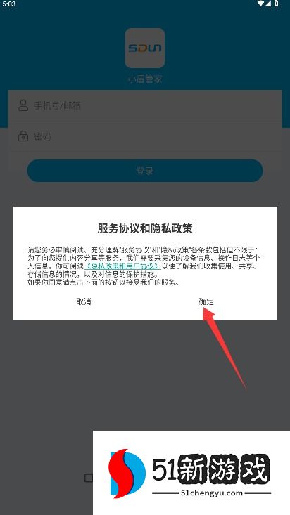 1、打开应用后仔细阅读用户协议和隐私政策,确认后点击确定按钮进入应用。