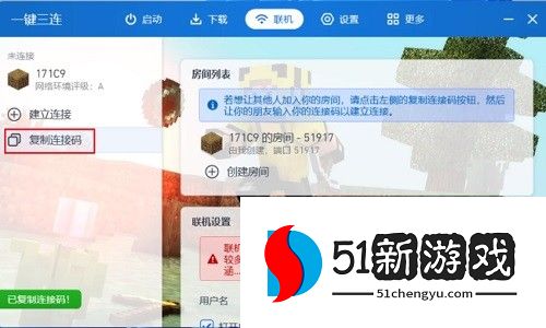 10、复制链接码发送给好友,好友输入房间号加入房间之后就能联机了。