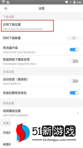 2、然后单击右上角的“设置”按钮,查看下载和保存应用程序的位置,并记下该位置。