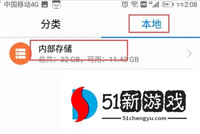 3、在移动桌面上打开文件管理,点击下面的内部存储按钮进入。
