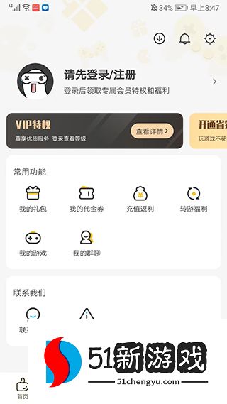 7、进入【我的】界面,包括一些常用的功能,比如我的礼包、我的代金券、充值返利、转游福利、我的游戏、我的群聊、联系客服等等,以上就是0氪手游平台app的使用方法了。