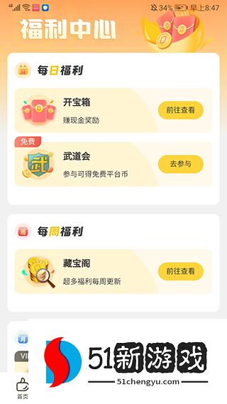 6、进入【福利中心】界面,包括每日福利、每周福利、每月福利等等不同类型的福利活动可以选择参与。