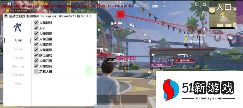 3、我们也可以通过绘制功能来设置射线、距离、血量、名字、背敌等选项的设置。
