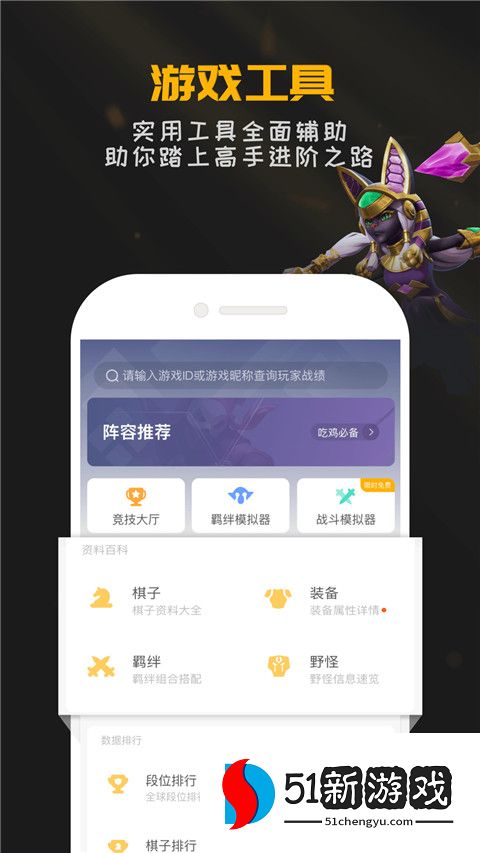 1、游戏工具板块提供阵容羁绊模拟器、最全游戏资料库,所有棋子详细信息一手掌握,助力战术规划。