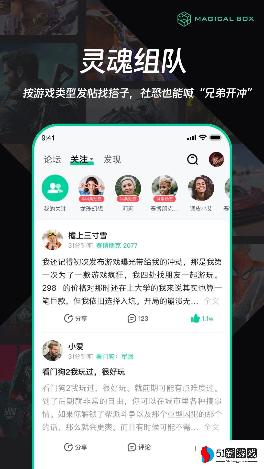 3、无社交焦虑的灵魂组队:根据游戏类别和游戏玩法建立论坛,排名寻找团队,创建固定职业的地牢组。你可以发布或评论来寻找队友,不再需要在一个球员身上独自承受社交焦虑。