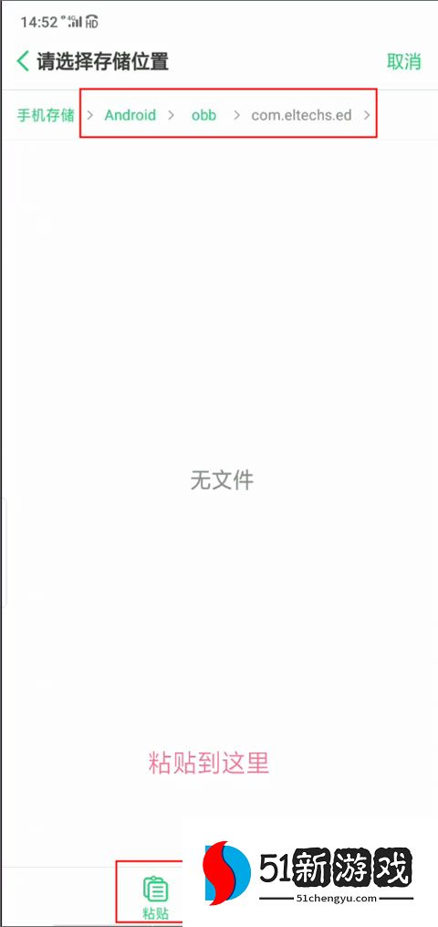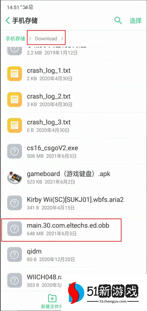 2、下面就是将百度网盘中以“。obb”结尾的文件下载到download这个文件夹,并复制粘贴到红色框框选中的安装路径上。