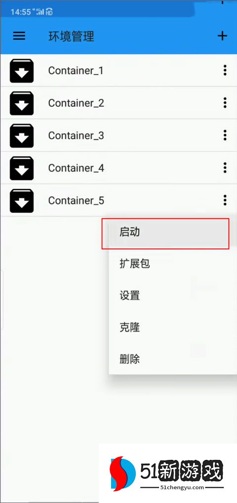 5、设置好后点击你添加的环境中“启动”按钮,进入操作界面这时你会发现没有游戏在里面。