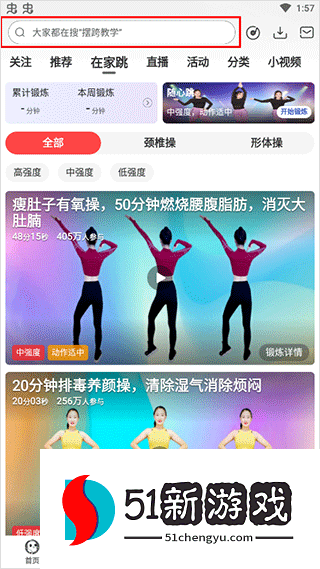 1、打开最新版本的糖豆广场舞app后,找到需要下载的视频并搜索。