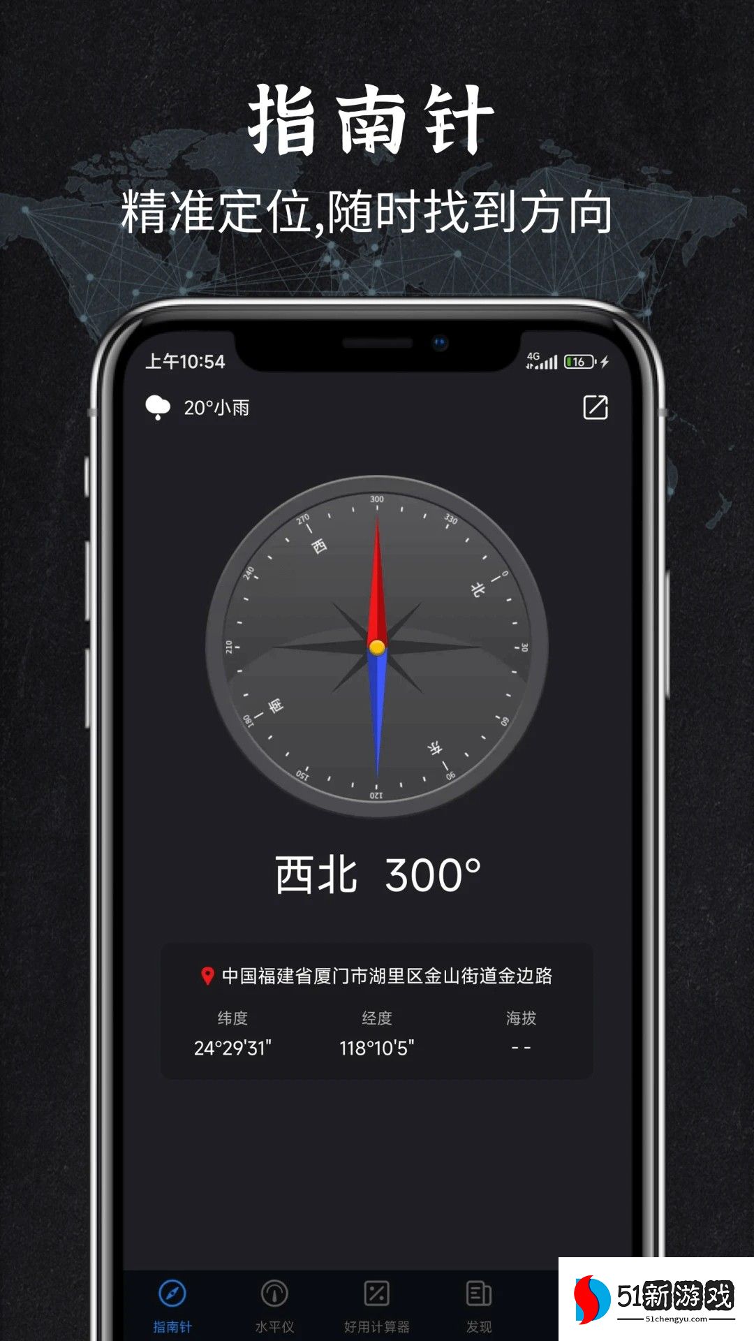 2、简单易懂的指南针校准功能:提供清晰的校准动画,帮助用户快速学习校准方法,提高指南针的精度。