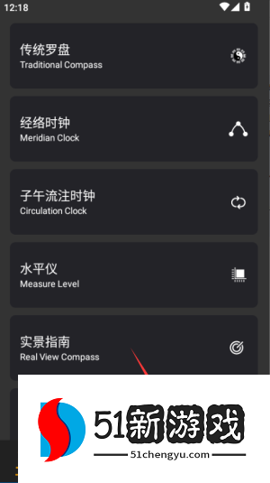 1、打开软件后,将手机水平放置,红色指针会自动指向当前正北方向。