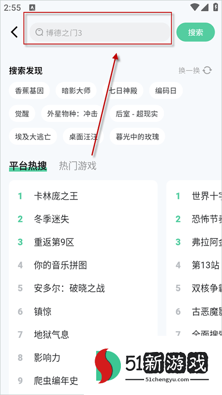 3、在首页顶部搜索框输入关键词,精准查找目标游戏。