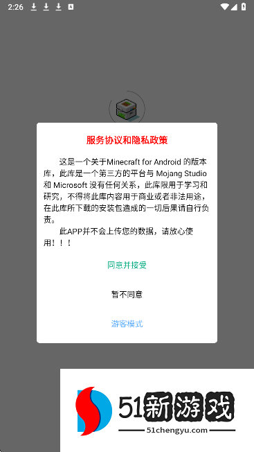 1、在本站下载MC版本库软件。同意用户协议。