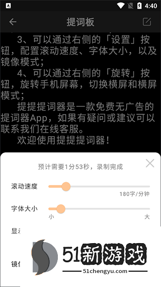 4、右下角的设置按钮允许您更改滚动速度、字体大小和镜像模式。