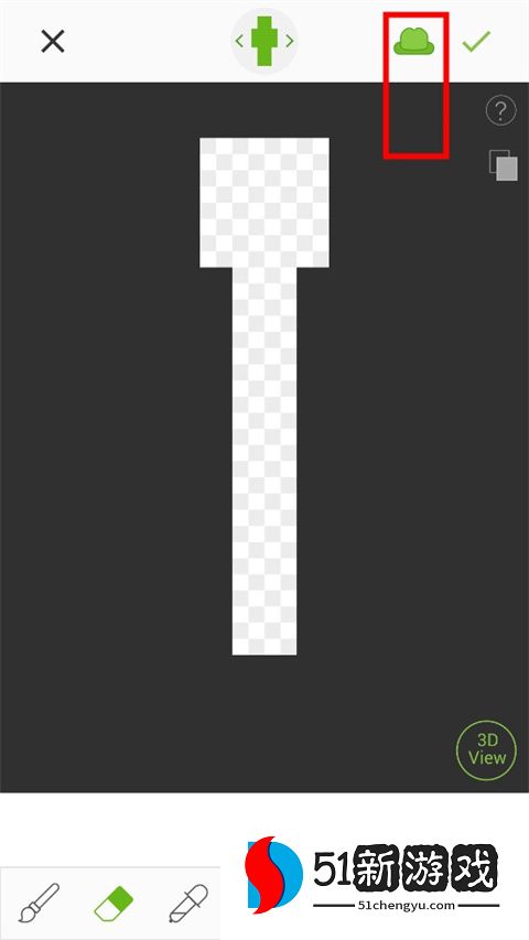 5、点击上方的帽子图标,就可以编辑皮肤的第2层。编辑皮肤的第2层,可以让皮肤人物本身显得更加真实和立体,点击圈中的图标,可以让人物皮肤的第1层和第2层同时显示。