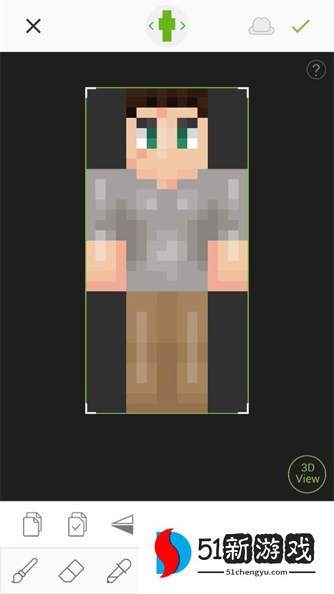 6、下面的功能都比较简单,画笔、橡皮擦等等,最后一个小功能提一下,可以复制粘贴我们所做的皮肤,以及垂直翻转和镜像翻转等,都比较的简单和平时编辑图片差不多。