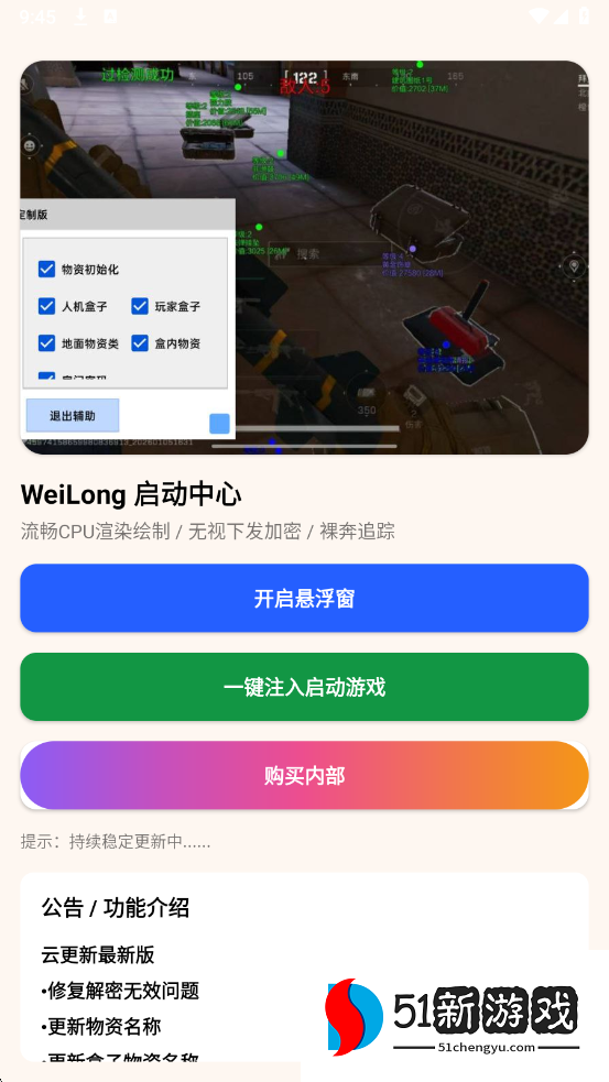 三角洲威龙直装是一款专为《三角洲行动》玩家量身定制的免ROOT直装辅助工具,其核心设计理念在于打破传统游戏辅助工具的复杂操作壁垒,通过高度集成的功能模块为玩家提供"即装即用"的便捷体验。这款工具深度适配游戏底层架构,无需对设备进行Root权限破解即可直接运行,既保障了账号安全性,又避免了因系统修改可能导致的兼容性问题,真正实现了零门槛的战术增强方案。
