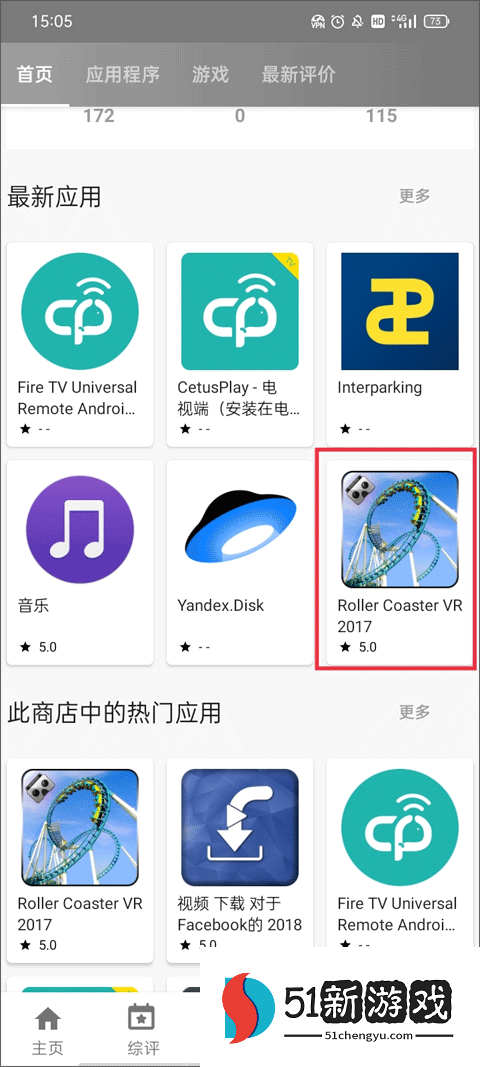 3、在商店首页中会显示它开发并发布的应用程序或游戏,还会显示它的最新评价,点击你想要下载的软件。