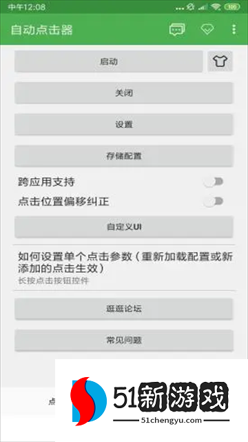 5、找到“自动点击器”,也是默认关闭的,需要开启;