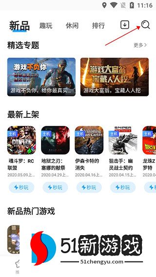 1、在本网站上下载并安装软件,打开天翼云游戏应用程序,点击右上角的搜索选项。