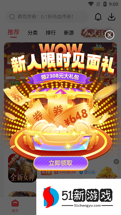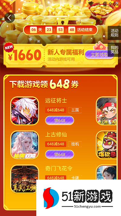4、还有海量新人福利,下载游戏领648券。