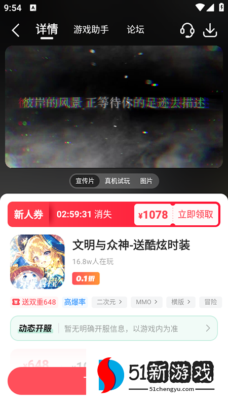 2、进入软件后找到感兴趣的游戏,点击领取648福利,下载游戏进行登录使用。