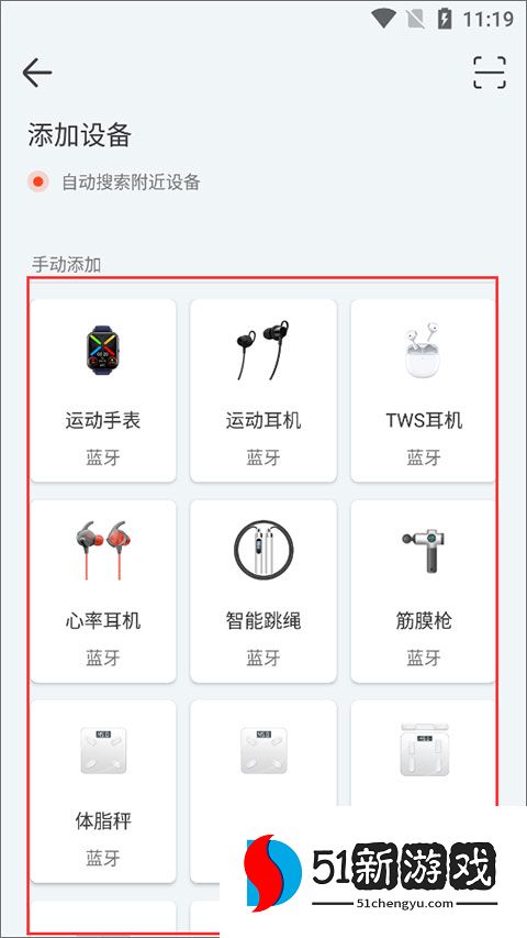 3、选择想要连接添加的智能设备,如运动手表、运动耳机、智能跳绳、体脂秤等等;