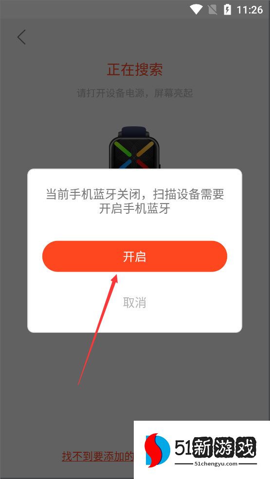 4、然后授予软件所需的蓝牙权限并打开智能设备的电源,让屏幕亮起,即会自动搜索附近设备;