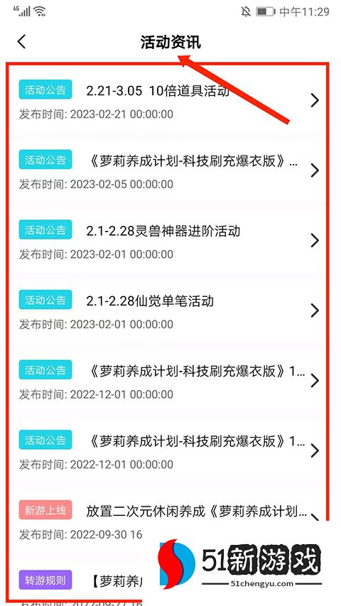 5、在【活动资讯】界面,可看到游戏的所有活动时间和公告,优先掌握游戏动态。