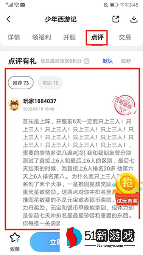 4、进入【点评】界面,往下滑动可看到真实玩家的评价、攻略和心得分享,可以更好地了解这款游戏。