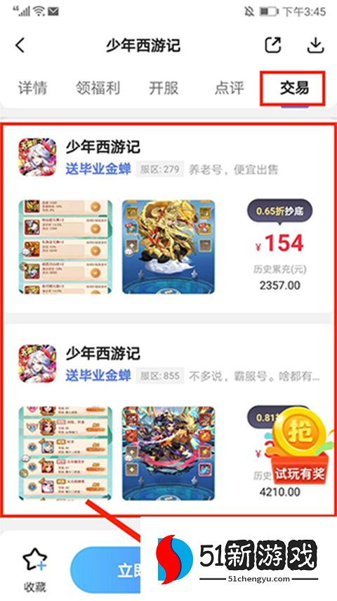 5、进入【交易】界面,可了解游戏账号的市场行情和进行账号的买卖,最后如果喜欢的话可以选择下方“下载”选项,进行愉快的游戏体验。