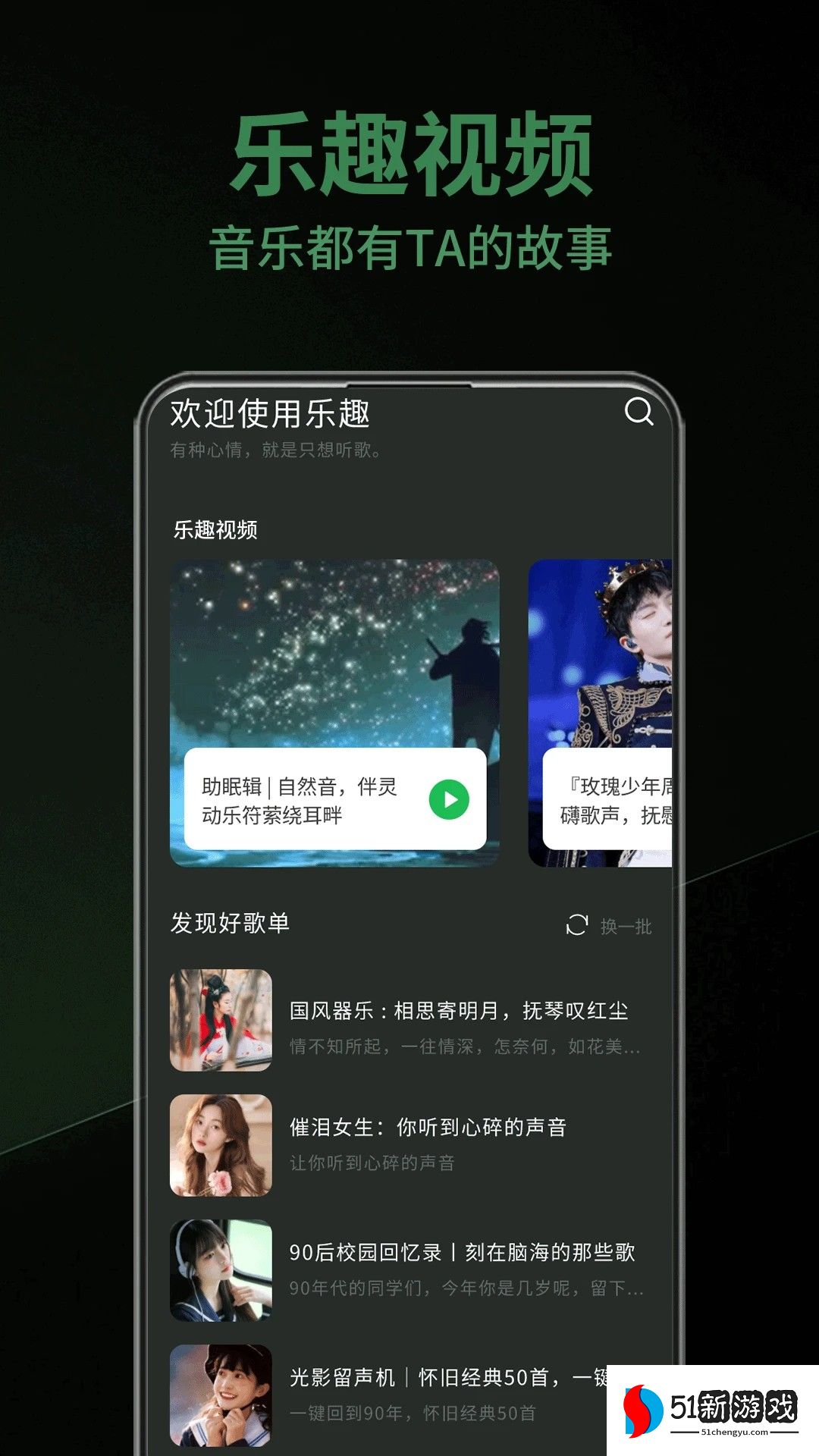 乐趣是一款全新的手机音乐播放软件,拥有个性化的音乐歌单,可以让用户及时获取最新且受欢迎的音乐资源,免费在线听歌播放,还整合了流行音乐,经典音乐,原创音乐等榜单,随时随地及时推送感兴趣的音乐来听,自由享受全面的音乐播放体验,还具有智能化的音乐搜索功能,可以直接输入音乐名称,歌手来搜索查找喜欢的音乐,方便用户直接收藏管理,能完全满足所有音乐需求,有需要的用户欢迎来本站下载软件。