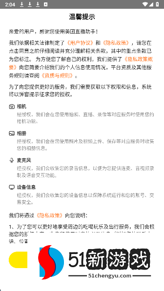 1、在本站下载美团直播助手app,同意用户协议。