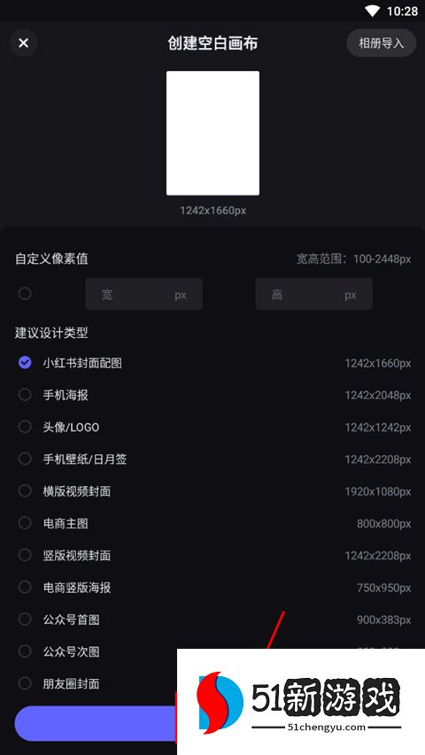 2、接下来,选择像素值和设计类型,然后单击“创建”。