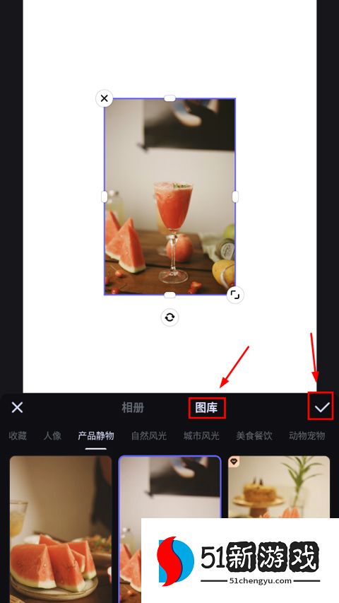 4、用户可以将图片添加到相册或图库中,添加后,点击右侧的√进行确认。