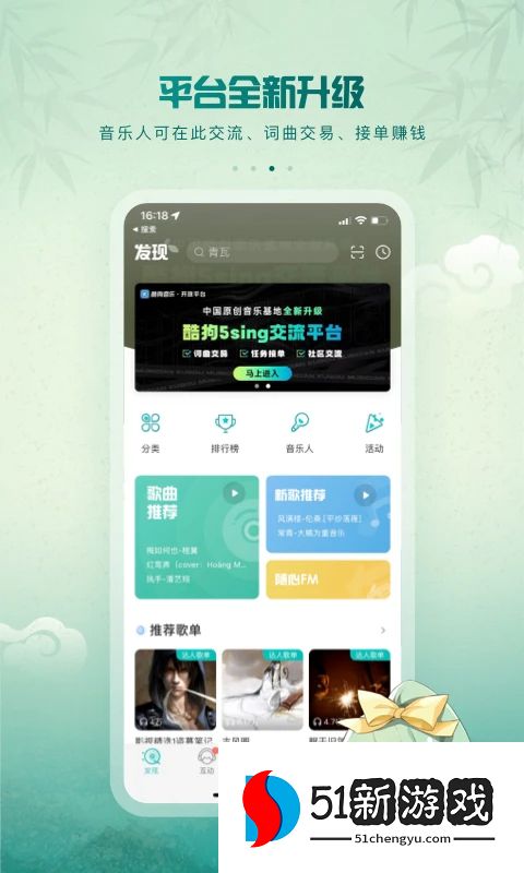 5sing音乐是一款受欢迎的手机音乐播放软件,拥有全面的音乐专区,可以让用户及时搜索查找热门且受欢迎的音乐资源,还具有个性化的音乐推荐系统,轻松根据用户的音乐播放列表和榜单来推送感兴趣的音乐歌曲,随时随地在线听歌播放,能完全满足所有音乐需求,还提供多样化的音乐播放模式,允许用户直接切换设置,免费选择喜欢的音乐来听,自由享受优秀的音乐播放体验,有需要的用户欢迎来本站下载软件吧。
