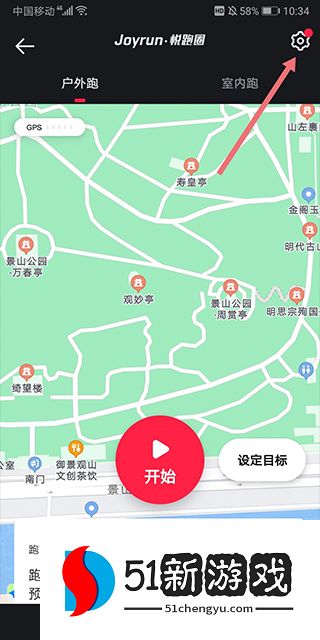 2、您也可以点击右上角的“设置”图标(如下图中红色箭头所示)进入跑步记录页面。