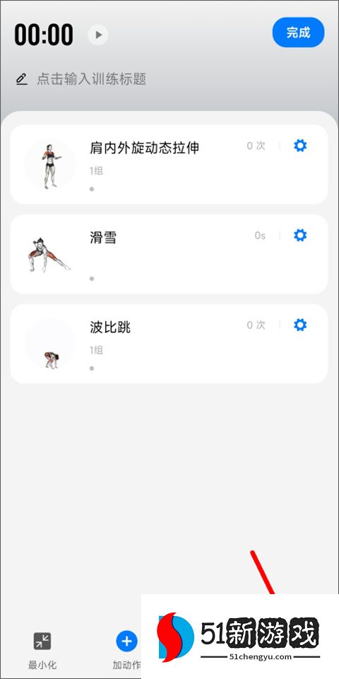 4、打开动作添加页面,用户可以根据自己的锻炼需求选择合适的锻炼动作,然后点击“完成”。