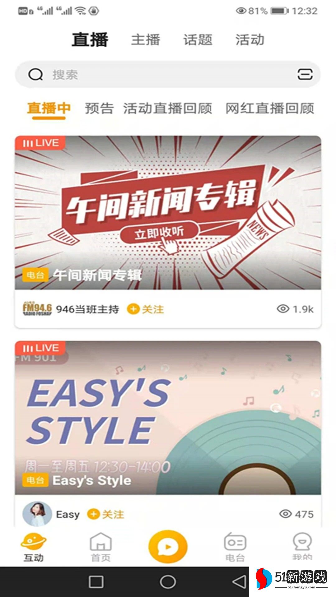 4、电台搜索:支持关键字搜索,使用户能够快速找到自己喜欢的电台。