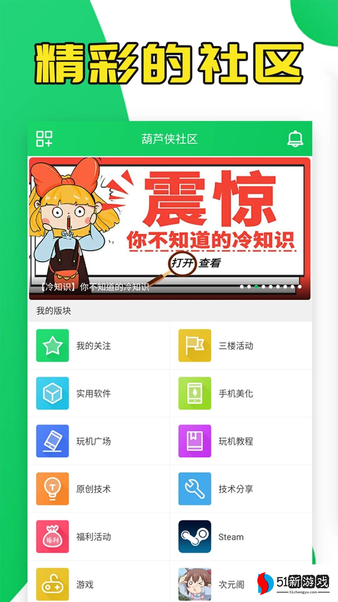 葫芦侠是一款简单易用的免费游戏社区软件,拥有丰富的游戏资源可以实时更新,还能进入首页中浏览详细游戏分类和榜单,轻松关注各种热门且受欢迎的游戏,随时随地在线下载体验精彩的游戏内容,还提供全新的游戏搜索,轻松输入游戏名称来搜索查找各种精品游戏,方便用户轻松管理,能完全满足所有使用需求,还能查看热门前沿游戏新闻资讯,自由了解各种游戏攻略和玩法,轻松成为游戏大神,有兴趣的用户欢迎来下载。